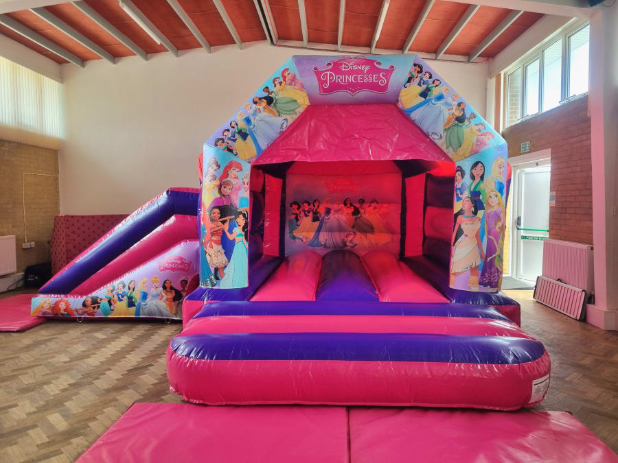 We bring you our very Popular Disney Princess Side Slide Castle, perfect for making your princesses day Extra special. All Princesses deserve to have some fun and this castle brings you exactly that with its bounce and slide combo!